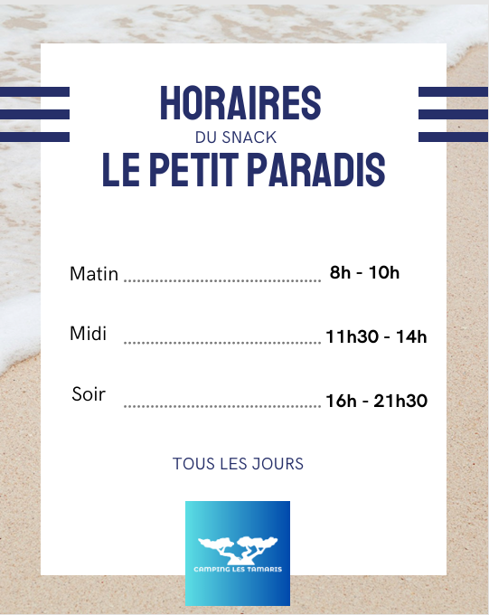 Sonia and Christophe are delighted to welcome you to the snack bar Le Petit Paradis, in the heart of our campsite Les Tamaris.